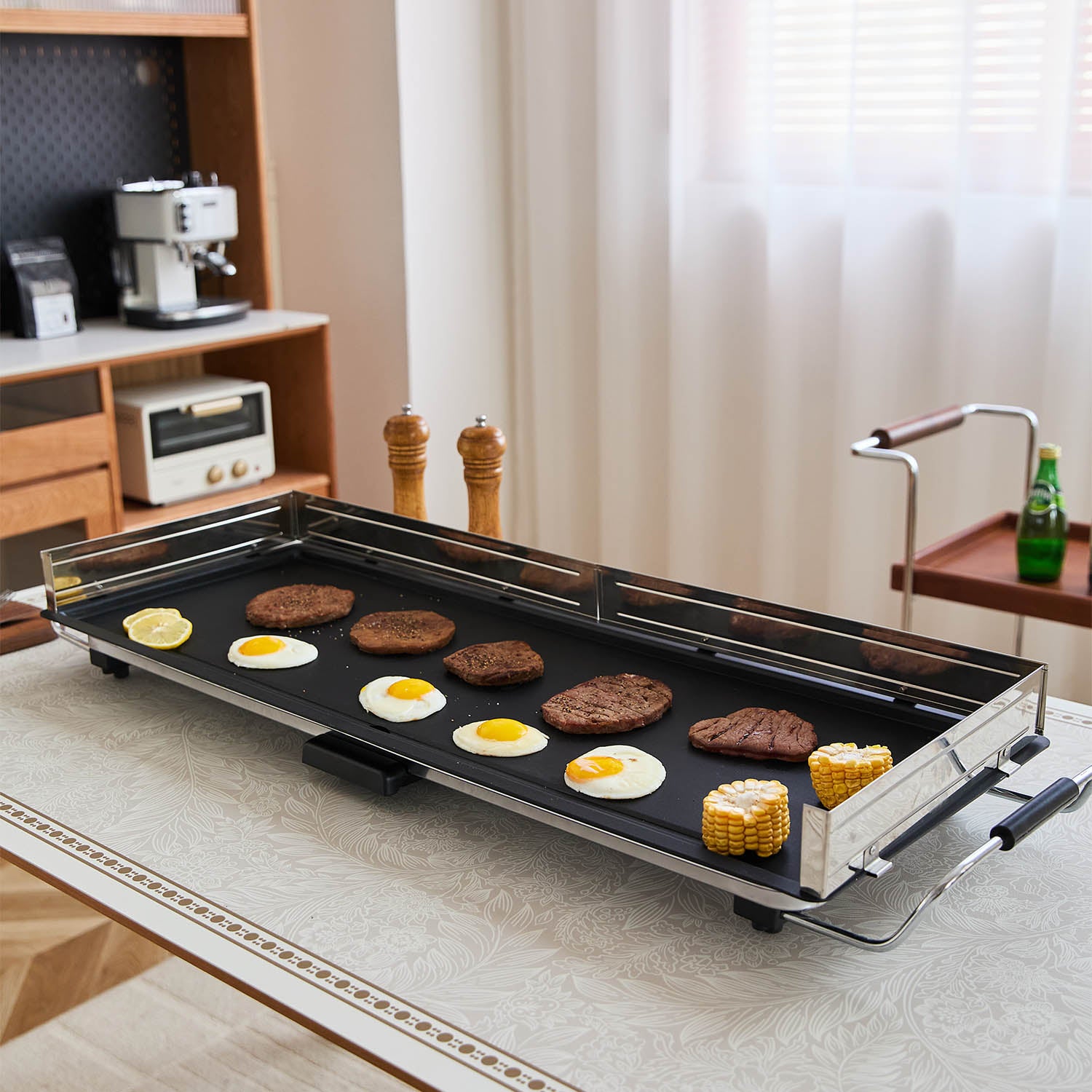 The AEWHALE 36" x 13" Grill is ideal when you’re cooking for your famoly or a crowd. When it’s time for a family dinner or a group of friends for brunch, this spacious pan can handle the job. Whip up a frittata or easily cook 12 steaks at a time. Cook up at least four salmon fillets with room for veggies. There’s no stopping your culinary prowess with a pan that offers so many possibilities.